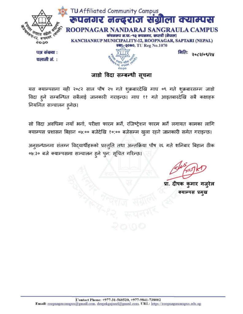 जाडो विदा सम्बन्धी सूचना
