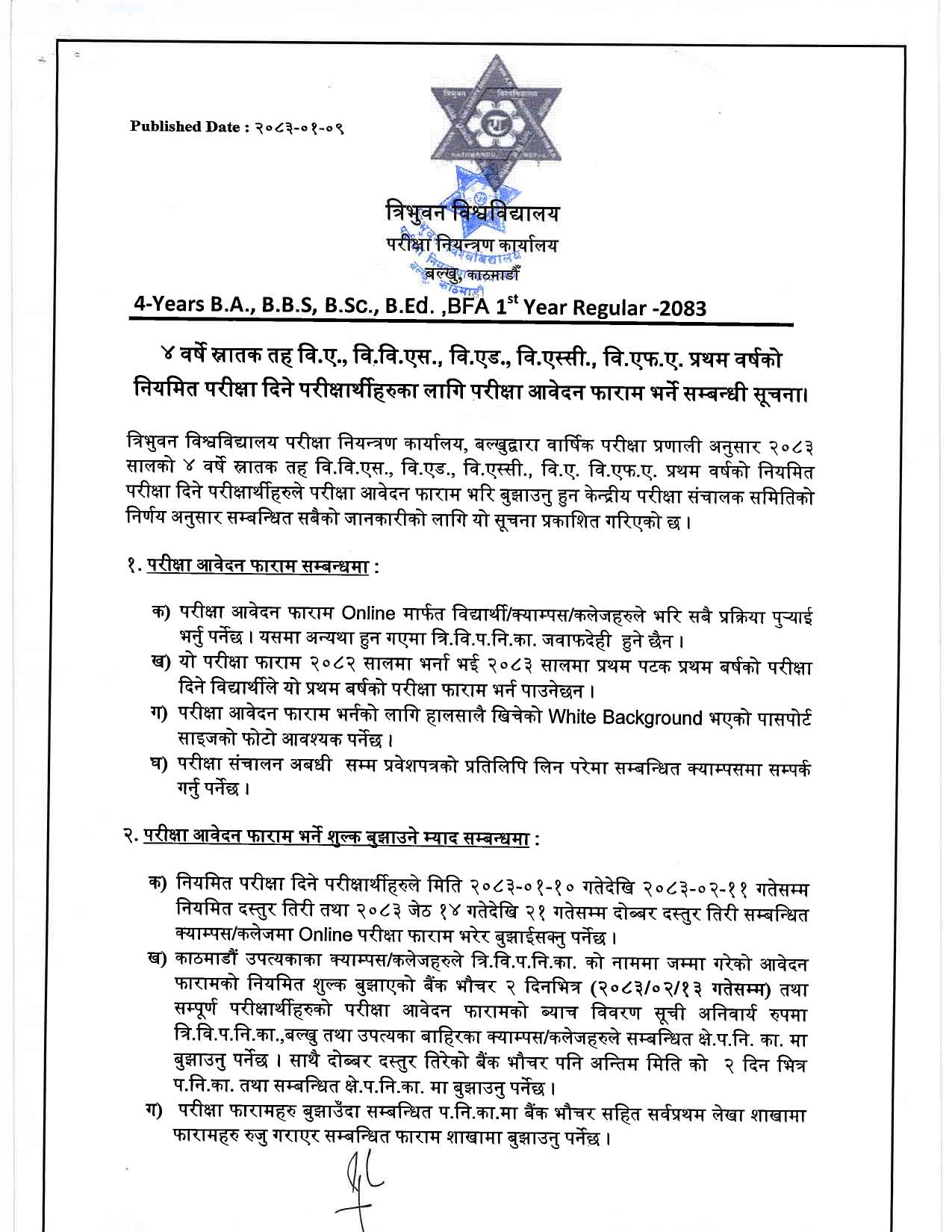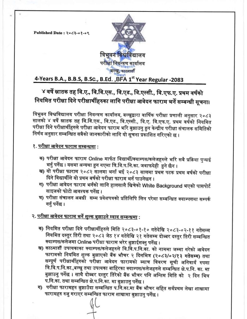 BBS पहिलो वर्ष 2082 को परीक्षा फारम खुल्यो